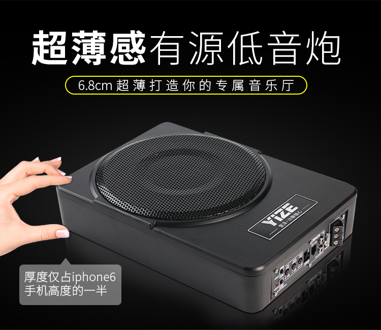 壹泽(YIZE)汽车音响车载低音炮 有源汽车低音炮10寸12V纯低音超薄座椅小钢炮