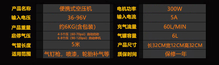 济得力双缸大功率电动车充气泵48-72V通用型电瓶车60伏真空胎修车带气罐 6L气罐【36V-96V通用】