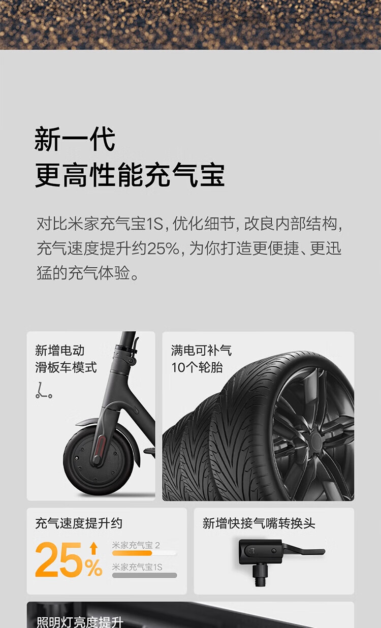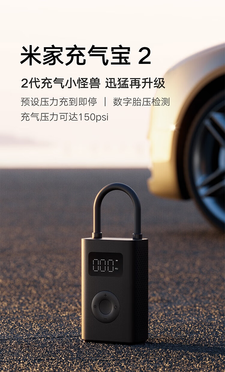 小米(MI)米家充气宝2车载电动充气泵胎压检测内置电池自行车篮足球打气筒