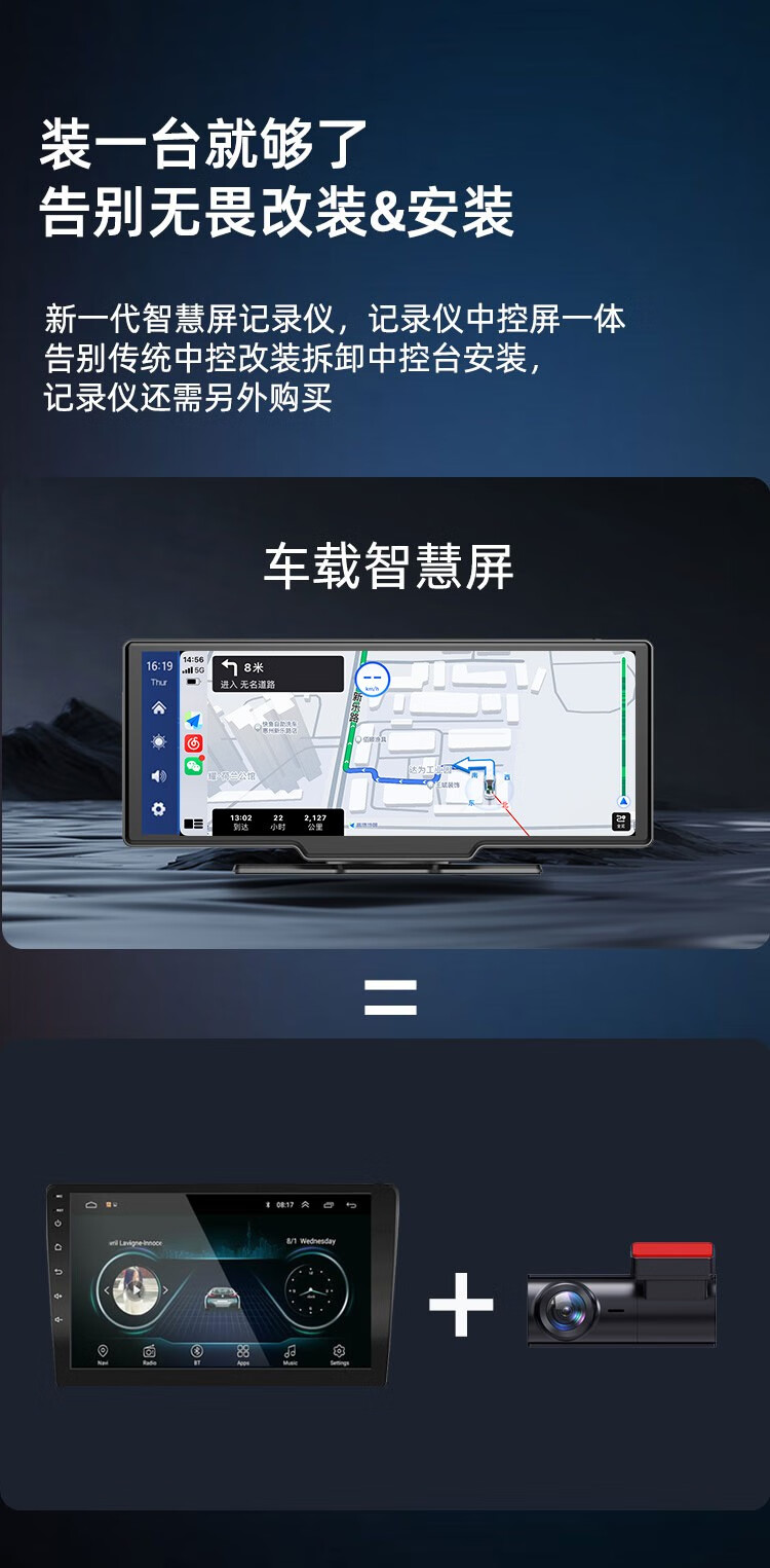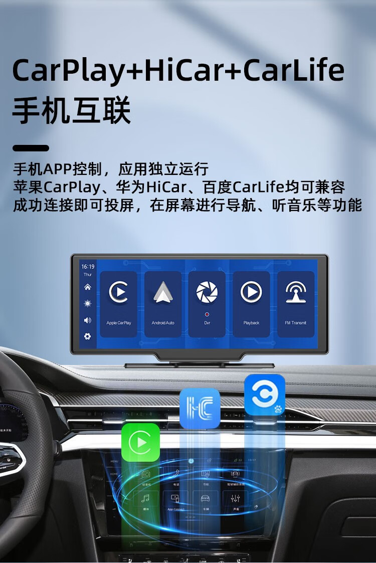 路瑞宝 车载智慧屏无线carplay行车记录仪华为hicar便携式导航不限车型 车载智慧屏+前录+无线CarPlay/HiCar