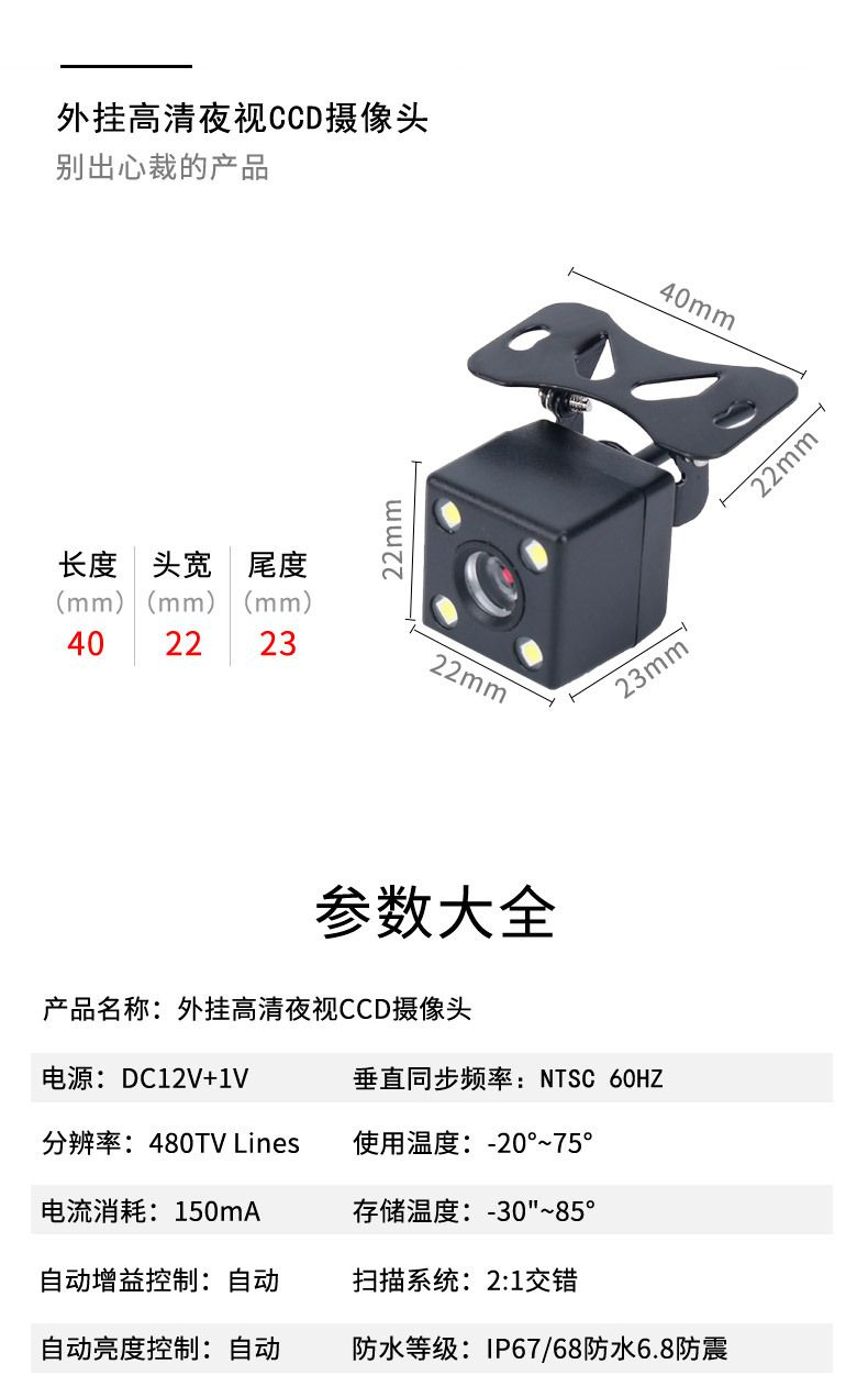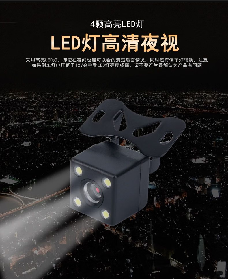 DPOYLBJ通用四灯汽车高清倒车摄像头CCD后影像车载大屏夜视广角轿车导航 高清四灯倒车影像(不带线)
