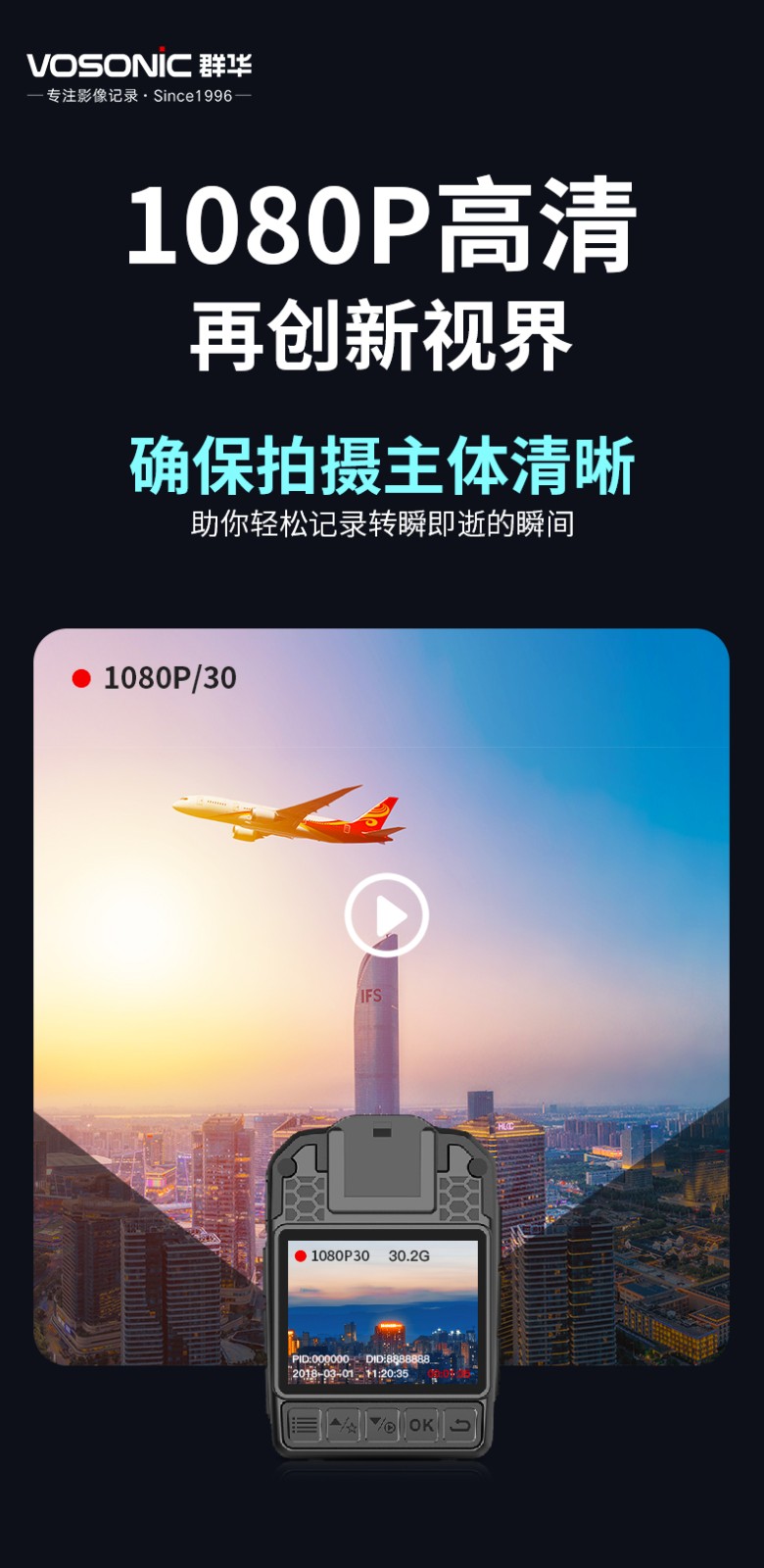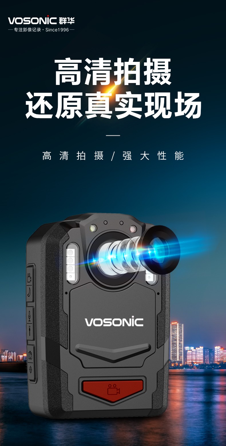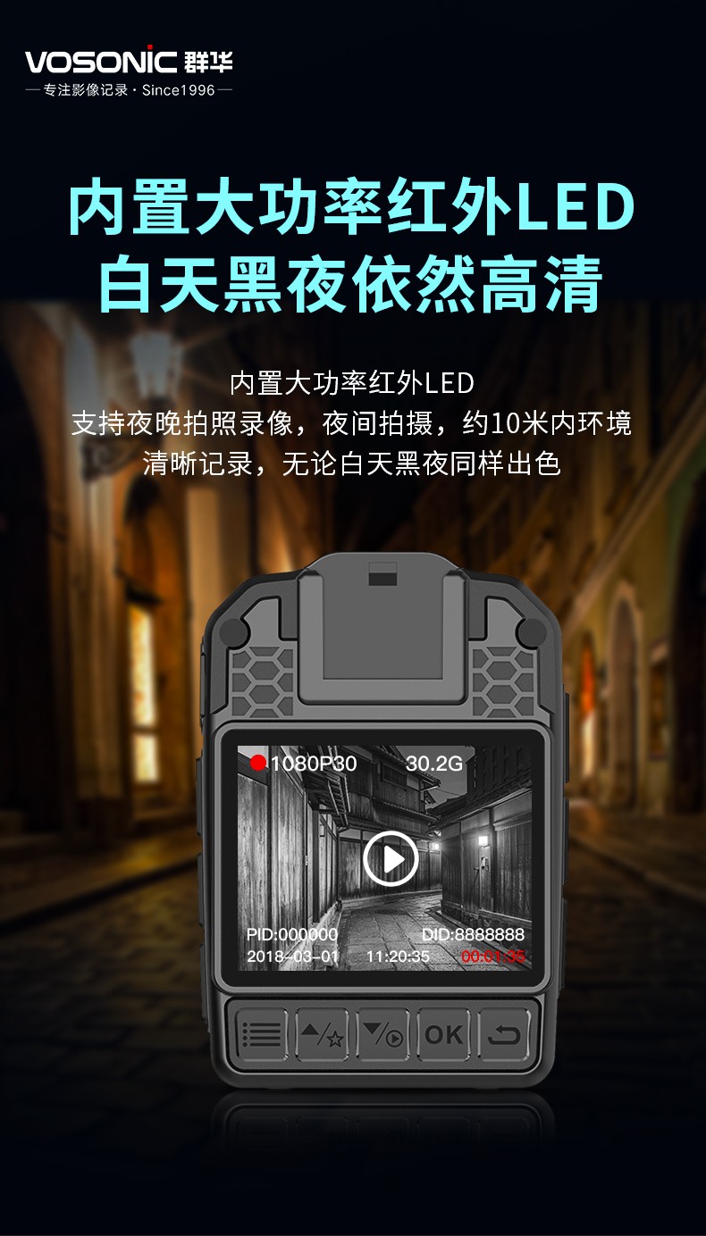 群华K1执法记录仪高清红外夜视红蓝爆闪18小时续航 K1+16G